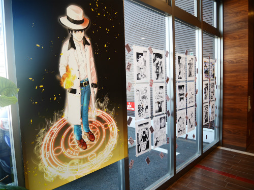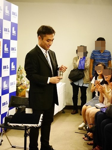 (記事が長くなりましたので、それぞれに飛べるようにしました。→サイン会(2) サイン会(3)) 来てくださった方々、暑い中ご足労頂きどうもありがとうございました。 (とはいっても、前日までの猛暑日よりはだいぶ楽な日だったので、本当によかったです) こんな記者会見場のようなイベントスペースがわざわざあってびっくりしましたよ! さすが大きい書店さんです、アイドルさんの書店イベントなどもやりますからね。ブックファースト新宿店さんさすがです。 お花もいただきました!山中ヒコ先生、KさんSさんありがとうございます! 2時からの開催でしたので、このお部屋に整理券を持っている皆さん2時に入場していただきました。 皆様に楽しんでいただくため、手順を計画しておりましたが…なんといってもサプライズは、 マジックです! マジシャンのpsyka(サイカ)さんです。(twitter @akysp) 控室で撮ったのでライティングが暗くてすみません! 実はpsykaさんは、9巻の裏カジノについての取材でお世話になった方なのです。 9巻の「マジックは生き方だから」というのはpsykaさんが言ってくださった言葉を使いました。 その取材時にマジックを見せていただいたり…とかは全然なかったのですが、