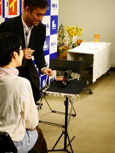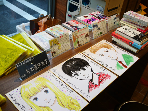 (記事が長くなりましたので、それぞれに飛べるようにしました。→サイン会(1)、サイン会(2) ) サイン会では皆様カードにご自分のお名前を書いていただき、そのお名前を杉本先生がコミックスにサインと共に書いて、サインしている間にちょっとお話したり、握手したりして、帰りにサイン会記念品(ポスターカレンダー)を持って帰っていただくという流れになりました。 どちらからいらしたんですかというお話に八王子方面が多かったようですねw それ以外にもいろんな方面からのお話をお聞きしました。 椅子があったので後ろの方も比較的ゆっくり待てたのではないでしょうか、その間コミックスを読んでくださる方も多かったようです。 しかしこの記者会見場感…背景のせいですねきっと!ブックファーストさんすごい。 プレゼントなどお気遣いくださる方もいらっしゃってすみません、皆様本当にどうもありがとうございました! さて、サイン会が終わってからちょっとブックファーストさんのすごい売り場を拝見していきました。この後はそのレポなのでご興味ある方はどうぞ。 こんなに連続してサイン会を開催されていたんですね!! ありがたいことに、サイン会関連などで新刊はもちろん、他の巻もご購入いただけたのも多かったらしく残部が少々になってしまったようですが、また入荷されるそうなのでよろしくお願い致します! どの棚もとても綺麗なブックファーストさん。こちらは新刊台です。 おはようスパンクやきんぎょ注意報!と死にたがりと雲雀が一緒に並ぶとは。今はいつなのか…。 このクラフト紙に描かれたポップは手描きだそうです、印刷としか思えないくらいペンがきれいでした! いろんな先生の手描きモノもいっぱいです!この箱も直筆ですよ!(側面もよくみるとあります) こういうとこにも直筆があったり… 試読見本もいたるところにありました。 棚も勿論ですが、ここにも収納しているんです、とか思わぬ陳列台の下にたくさんの本があったり… とにかく沢山の本や棚の飾りつけでとても楽しかったです。 (許可いただいて撮影させていただきました) 書店員さんたちにも大変良くしていただきました、本当にどうもありがとうございました! |