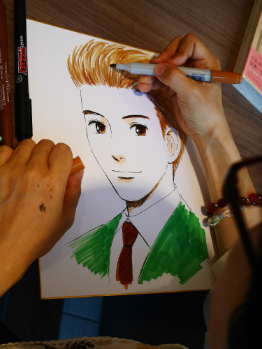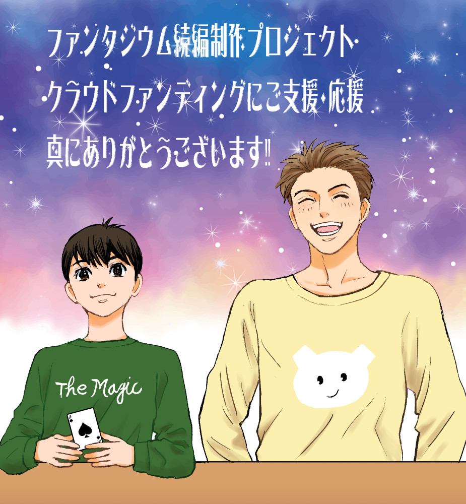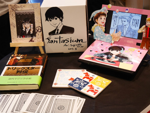 今回マジックを快くお引き受けくださいました。 しかも、ファンタジウム作中に出てくるマジックをやっていただくようお願いしたんです。 まずは杉本先生とpsykaさんが一緒にご挨拶をして、皆様に前の方に来て見てくださいということで… 手始めのマジックです。 「漫画家さんとは何もないところから一枚一枚作り上げないといけません。マジックもなにもない所から出して行かなければいけないところが似ていますね」 と全て白いデック(トランプ)を見せてくれます。 「一枚描いたら表紙ができました。(一枚がトランプの札に変化。) でも本文がまだです。本文も少しずつ描いていって…全部描けたら本になります」と、 白いトランプが1枚ずつトランプ柄になっていき、最後には全部がトランプのカードになっています!お見事! 次に、「ワイルドカード」をやってくれました。 1巻の3話めで、矢口さんがやってくれたマジックです。 矢口さんの手順では、こうしてジョーカーのカードを白いカードに変えるワイルドカードでしたが… こちらは最初2のカードばかりが並んでいました。 9のカードではさんでいくと何故か一枚ずつ… 9になっていきます… 9になっていきます! 全て9になりました! psykaさんは「普通はマジックでは先に何が起こるのかわからないお客さんに見せるんですけど、ここにいらっしゃる方は何が起こるかわかってるので非常に難しいですねー」といいながら、とっても滑らかに演技してくだいます。 そして次は「マイザーズ・ドリーム」です。(長くなったので続きます) |
