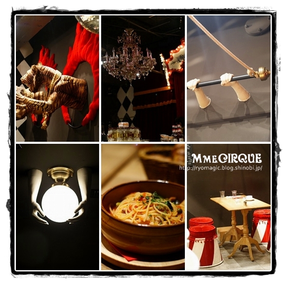 Mme.CIRQUE(マダム・シルキュ) シルキュというのは、シルク・ド・ソレイユと同じ、サーカスという意味で、そのものずばりサーカスがテーマのお店です。 入ったとたんこんな内装が目に入ります。よく見えないかもしれませんが、カーテンの間から象がのぞいているんです。 ご覧の通り、お店なのに、虎やライオンが火の輪くぐりしてますし、手が空中ブランコしてます。テーブルや椅子もさりげなくサーカステイストですし、ずっとサーカス風の曲が流れています。 料理の内容は洋食屋さんといった感じのもので、ランチはサラダ・スープ・クロワッサン・メイン・飲み物がつくといったなかなかたっぷりのものでした。 サーカスというと少し暗いイメージかなと思いきや、良好みの子供の好きそうなメニューがいっぱいですし、内装の面白さもあいまって良もとても喜んでいました。 お店は新宿三越アルコットにあるのですが、中からだとちょっとわかりにくいくらい端の方にあります。 でも、こんな風に気軽にサーカス気分を味わえるのもまた面白いですよ! サーカス気分のレストランといえば、もうすぐルナ・レガーロというスーパーサーカスレストランができるみたいです。 こちらのサイトでは、ロシアンバーやエアリアルなどで遊べるので楽しいです。サーカスとレストランというのもどんなパフォーマンスができるのか気になりますね。 あらゆるエンターテイメントはマジックと同じようなところを目指していると思うので、積極的に触れていければと思います。 |