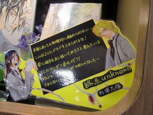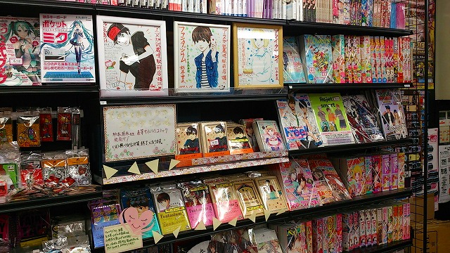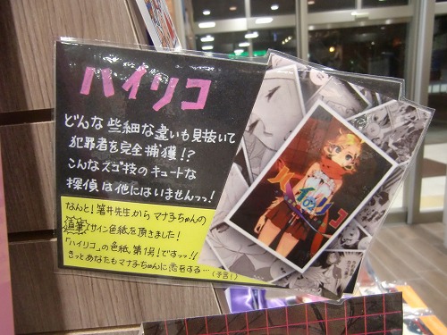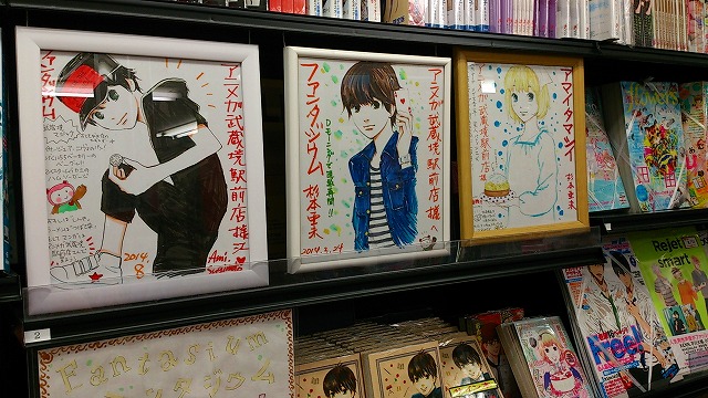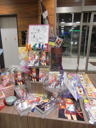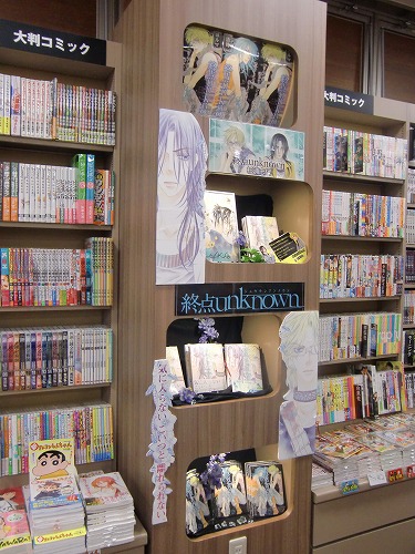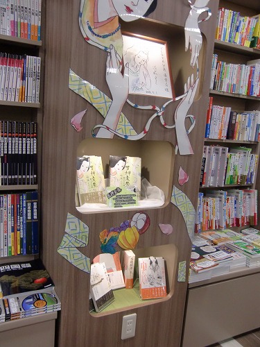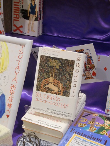 来てくださった方々、お店の様子を見てくださった方々、用意が大変だったでしょう書店の方々、どうもありがとうございました! その西宝店さんなのですが、売り場の様子が素晴らしいのでご紹介させていただきます。 まずはファンタジウムのコーナー展開を豪華にしていただいているのでそちらをご覧ください! ファンタジウムに登場した「最後のユニコーン」も一緒に販売されています! その横には「アマイタマシイ」のコーナーも。 トランプや、こんなかわいいタイルなどでも装飾されています。 この柄はユニコーン的なイメージかな? このコーナー以外にも! この良は等身大くらい大きいんですよ! また、複製原画も飾っていただいてます! よく見るととめてある付箋もトランプです。かわいいです! そしてこちらは箸井地図先生のハイリコのコーナー。 色紙がすごくかわいいです! 書店さんのコメントも! そしてこちらは杉浦志保先生の終点unknownのコーナー。飾り付けが綺麗です。 色紙が、近くで見るととても綺麗なんですよー! そして近藤ようこ先生のコーナー。 このコーナー装飾のしかたが本のイメージに合っていて素敵です! 色紙がまた和風の雰囲気をかもしだしていて素晴らしいです。 そしてこちらはDr.DMATの菊池昭夫先生の色紙。色紙とは思えないこのカラーの描きこみ、どうやって描いてらっしゃるのでしょう。 そしてまた違うコーナーでもファンタジウムやアマイタマシイを展示していてくださっていました。 細かくお気遣いくださりありがたいことです! コミックのコーナーだけでなく、文房具などもあり本屋さんとしてもお洒落でとても雰囲気がいいんですよ。(カフェもあるんですから!) 全体を見回すとこんなに広い… とても素晴らしい売り場を見せていただきました、どうもありがとうございました! そして、お店を出てから… ときたまちゃんにもお会いしました。ゆるキャラグランプリ参加中だそうです! これは進撃バージョンだそうですよ。(足も)よくみるとバンバンジーさんが食われてます。 なんでしょう、この存在感。ソシオも負けていられません! というわけで、素敵な香川を満喫させていただきました。楽しい思い出をどうもありがとうございました! |
