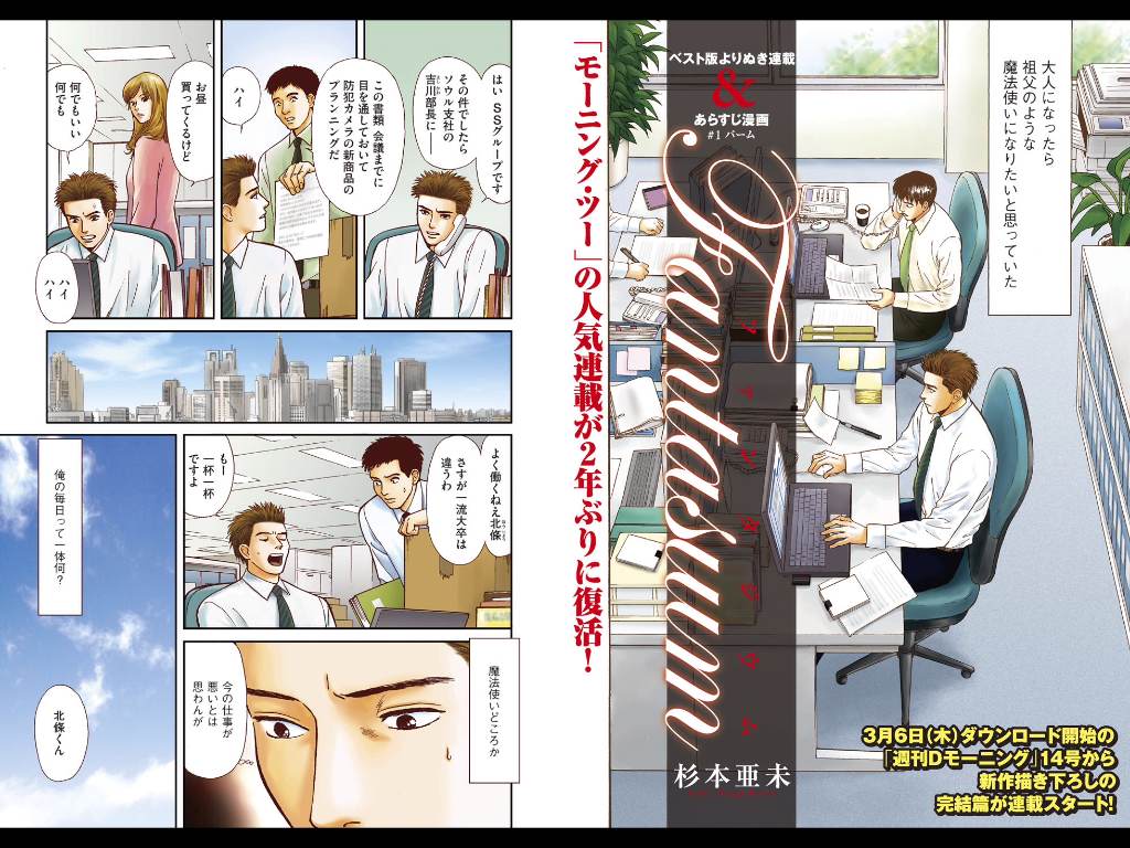 本日1月30日発売の週刊コミックモーニング、及び週刊Dモーニングに、杉本亜未先生の読みきり 「闇の瞬き」が掲載されています。 こちらは夭逝した天才女流作家樋口一葉さんの14ヶ月を描かれた作品です。 一葉さんの苦しい生活の中での作家としての才気の煌き、ぜひご覧ください。 そして、同時にカラーでファンタジウムとアマイタマシイの宣伝ページもありますよ! モーニングがスマホやタブレットで読める「週刊Dモーニング」にて、3月6日(木曜)の14号から、完全書き下ろし「ファンタジウム」新作連載がスタートします!(週刊Dモーニングは、アンドロイド・iOS対応です。) それに先駆けて、2月6日ダウンロード開始の「週刊Dモーニング」10号から、「ファンタジウム」のあらすじがわかる「ベスト版よりぬき連載&あらすじ漫画」が4号連続で掲載されます。 完結篇連載開始、とありますが、 人気によって長くなるかどうか、先のことはこれからですのでぜひまずはDモーニングをごらんになってください!書き下ろし連載は3月6日からです!どうぞよろしくお願いいたします。 |